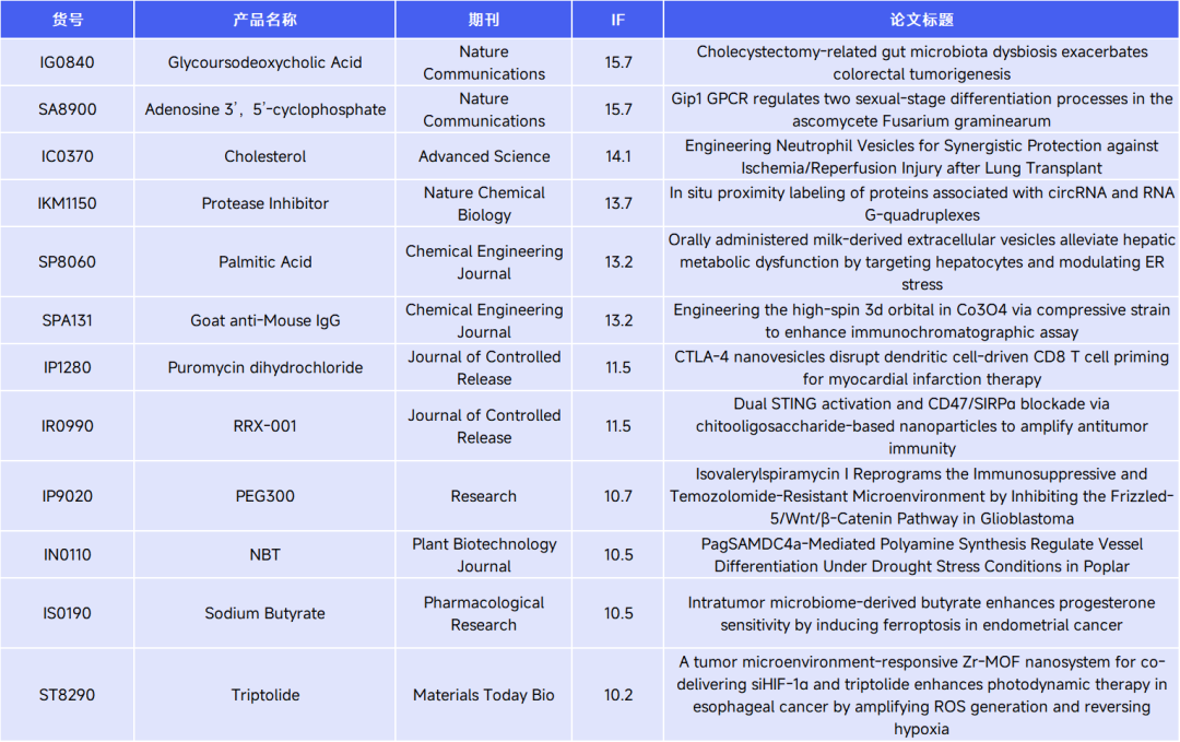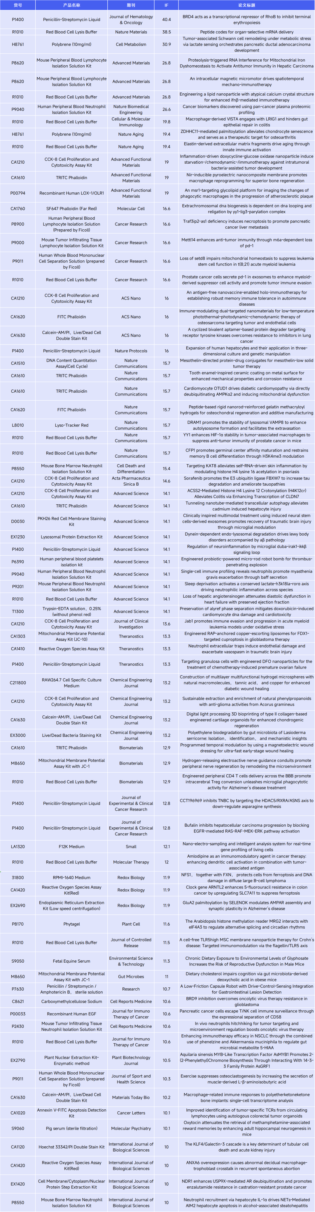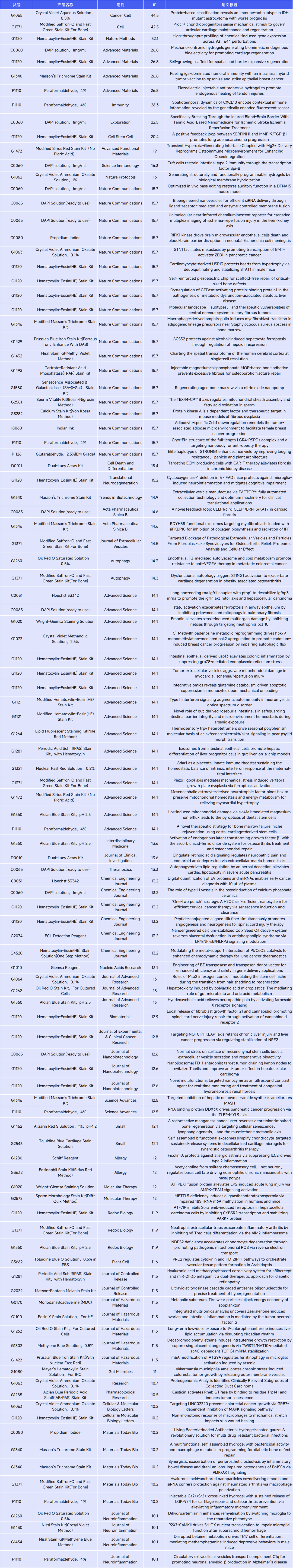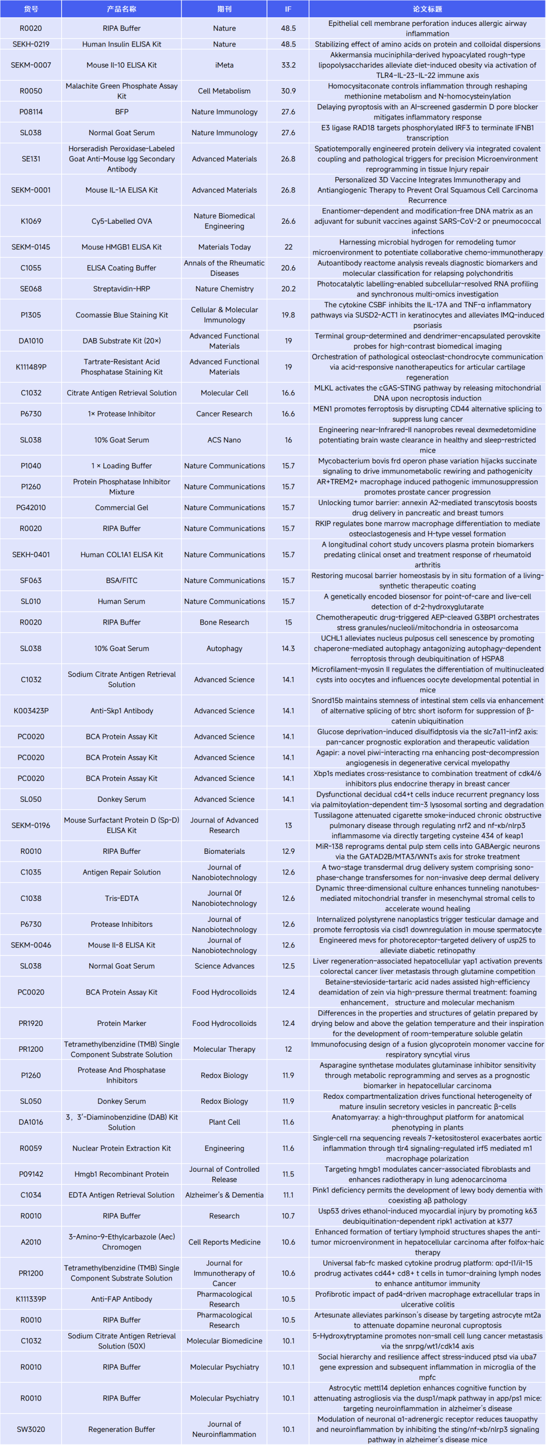 此外,我们精心挑选了10篇IF超过26.8的杰出文献,涵盖了染色液、细胞生物学、生化试剂盒、ELISA试剂盒、重组蛋白等多种产品,供有需要的友友们参考。