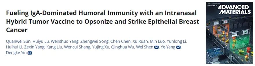 标题:Fueling IgA-Dominated Humoral Immunity with an Intranasal Hybrid Tumor Vaccine to Opsonize and Strike Epithelial Breast Cancer